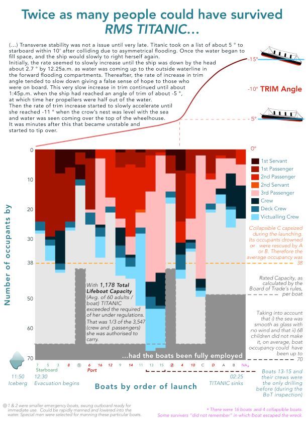 With the introduction of new variables we could change the typical categorical analysis of the titanic data into an analysis of continuous variables. Trim was used to make clear that you cannot just say Survived/RIP. It makes a difference if you were first in line of the evacuation or last. Fate shows that there are people who should have survived but sacrificed, like engineers within the passengers, priests, musicians, women with children, ...