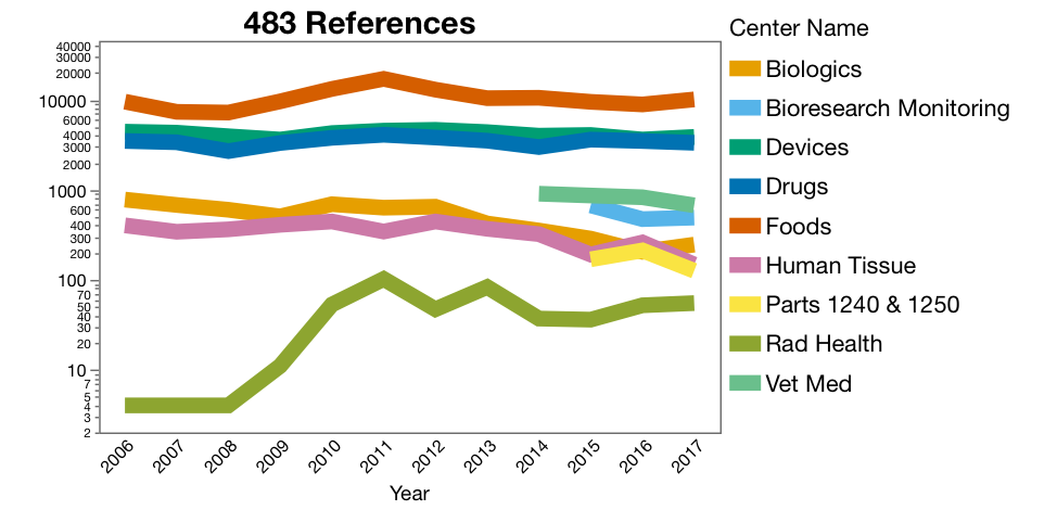 Figure 1. Counts of 483’s by Center for 2006 to 2017. Graph of the raw