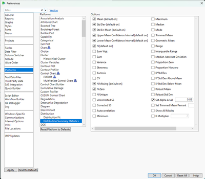 Go File > Preferences > Platforms > Distribution Summary Statistics, and check/uncheck the boxes for the statistics that you want to appear or not appear.