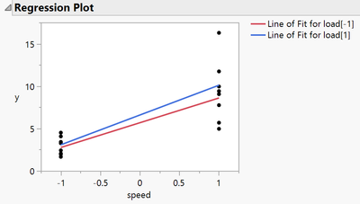 I have my model, which for the special case of a single continuous variable, or one continuous and one discrete (as here) is shown in the Regression Plot outline.