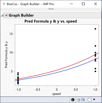 In this example its reasonable apparent that variance increases with speed and this can be improved with a Log transformation to the response. This is confirmed by evaluating Box Cox transformations ( λ = - 0 is equivalent to a log transform).