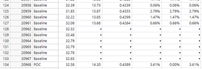 I'm working with JMP 17.0.0 - I'm trying to find a way to calculate the % Change between two conditions in a column that will update automatically as new data is added. See the attached data file for reference.