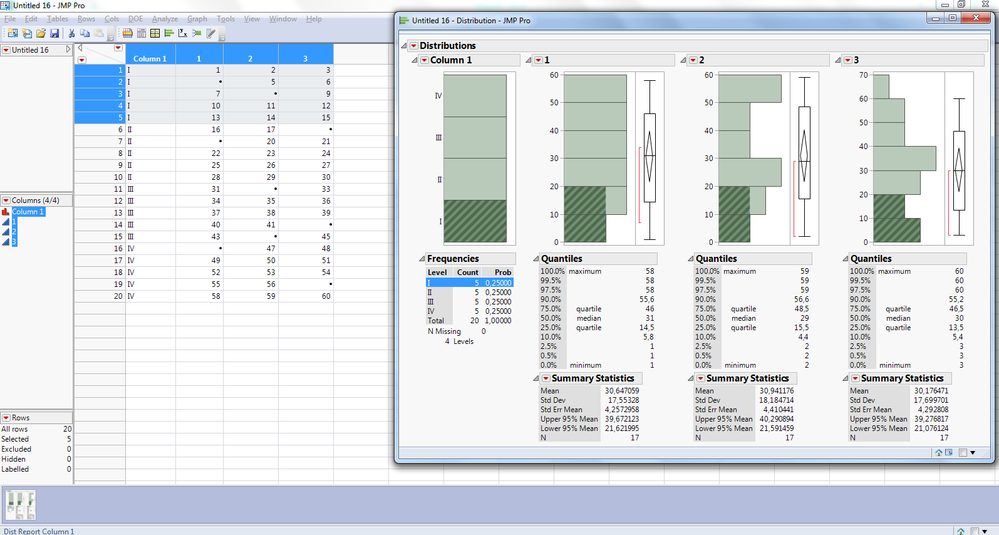 Perhaps if you described, step by step, what you are doing and what informaiton you are examining, we could help. Posting a picture of the data and the JMP analyses would also be helpful.