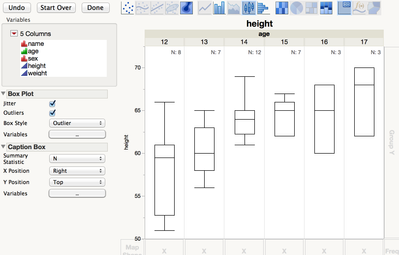 You can put the X variable in Group X and turn on the Caption element, choosing N as the caption statistic: