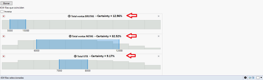 Each filter in each column, for example the Cost column and the Total Sale column, could show its certainty in its own bar chart......, then the normal quantile chart and the value chart would no longer be necessary. bars located below the normal quantile graph, example: