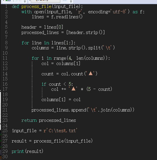 For example, this file is a txt file.TAB spacing: Column 2 contains, column 2 contains The maximum number of rows is 5 Can you use regular substitution to replace rows with less than 5 such symbols to complete the cell with a total of 5 similar symbols? Make up as shown in the figure.