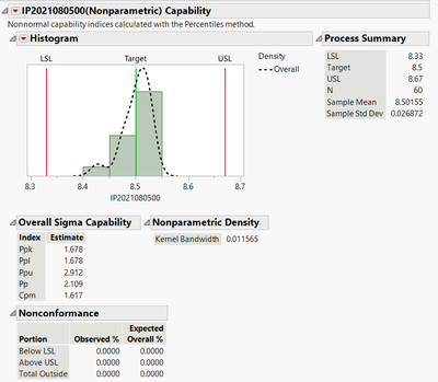 Hello, I simply used R to calculate some percentiles, which are slightly different from JMP, but the Ppk calculation result is too different (R:2.026, JMP: 1.678), which may not be the error caused by the percentile calculation method .