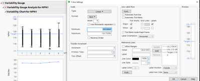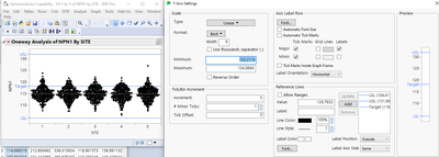 Distribution, Graph Builder, One Way, Variability Chart - use ref lines