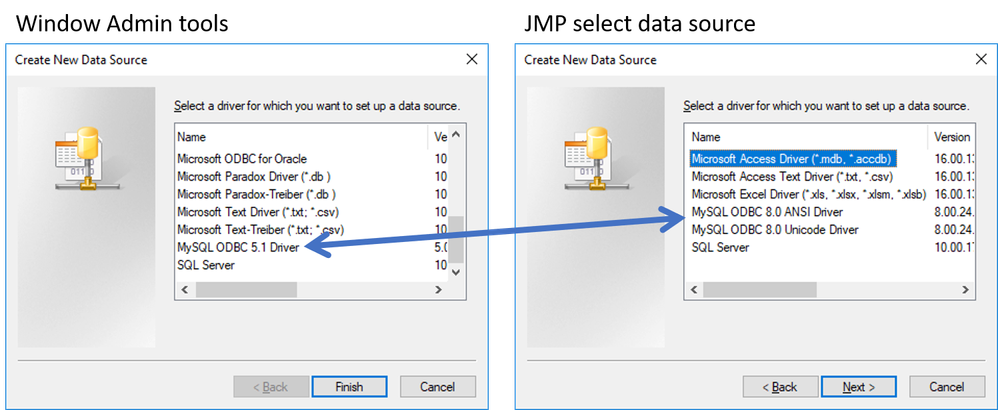 I am trying to connect JMP to a MySQL database but JMP give me only the latest version of drivers even if on my machine I have the old version that is the only one compatible with the database.