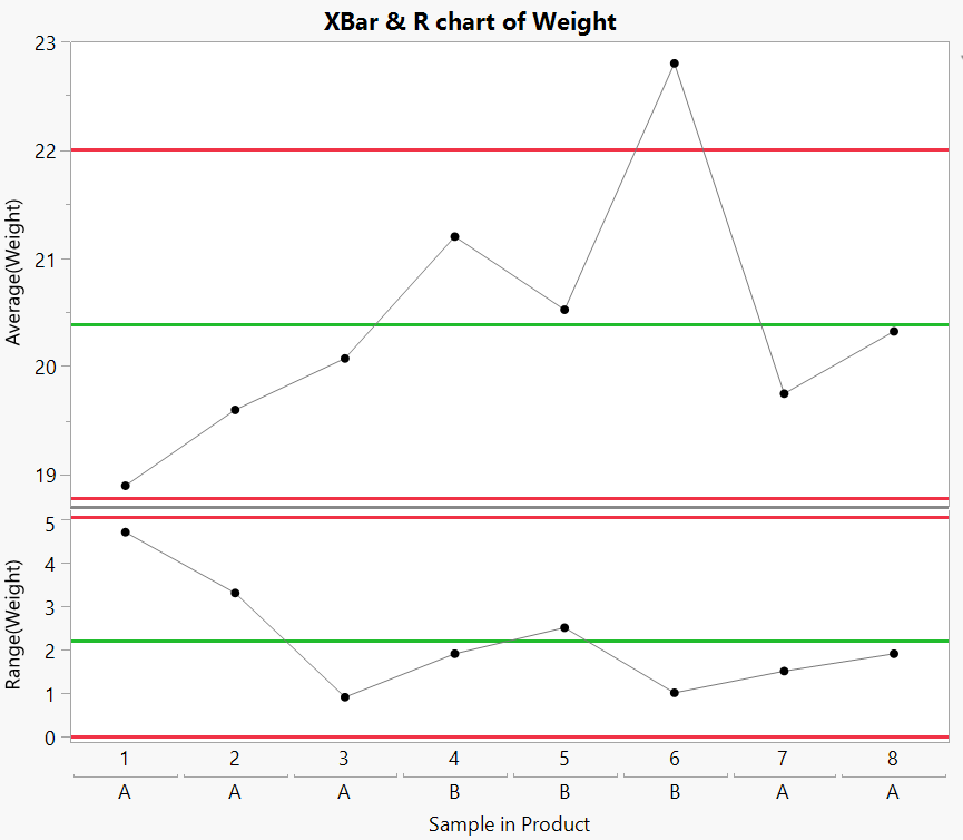 We migrated from JMP18 to JMP19 and noticed a change in behavior in the control chart builder. In the example below, I have a double X-axis with Sample first and then Product. I liked the fact that in JMP18 the values were grouped together, which made it more visually readable. I know that in this example the order is different because category A comes at the end, but let's assume that this was not the case; it doesn't change the visual.