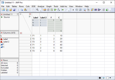 Stacked data with some cleanup (Recode columns to remove F from Label and new C column to perform calculations)
