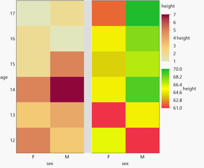 {Set Text( "Age vs. Sex, Colored on Height -- Min, Mean, Max" )}