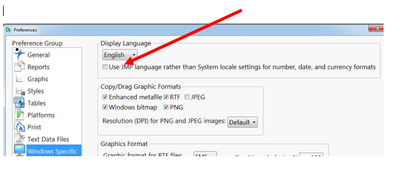 IN JMP>PREFERENCES>WINDOWS SPECIFIC, examine the setting below. The locale settings for your operating system normally determine settings for number, date, and currency formats. So, if checked, try unchecking it.