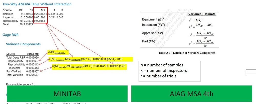 Thank you very much. I am not a professional statistician. I just want to know how to answer customers when they ask about inconsistent results. The algorithm of MINITAB is consistent with the AIAG MSA manual.