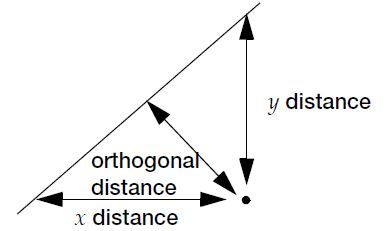 the perpendicular distance depends on how X and Y are scaled, and the scaling for the