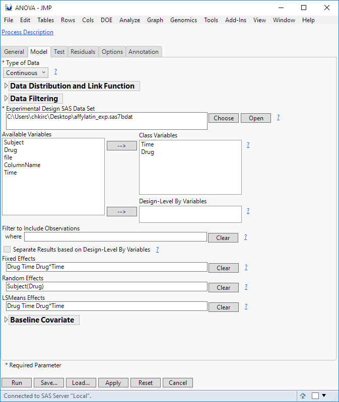 So in for this example, it would look something like this in JMP Genomics ANOVA dialog: