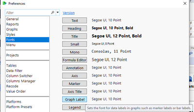 How can I permanently change the Font size for the 'Label by Value' inside the graph builder?