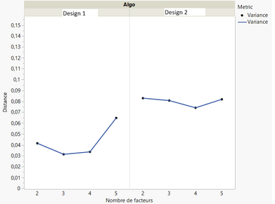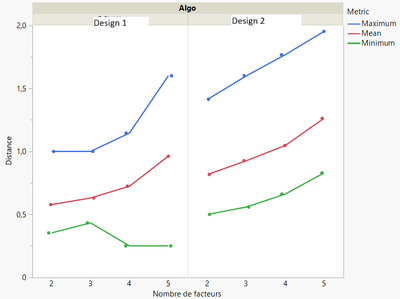 I can now compare designs depending on the min, mean, max distance values, and variability in the distances between points (range, StdDev/Variance, ...). Still no MaxPro calculations, but a better insight about distribution of points in Space-Filling designs.