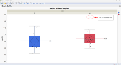 Variables( Y( :weight ), Group X( :sex ), Color( :sex ) ),