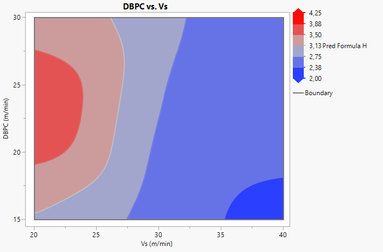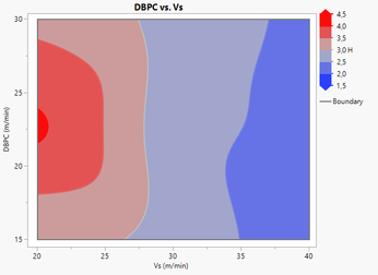 Unfortunately, I do not see a way to get what you want from within the Fit Model results. Graph Builder, as indicated by @txnelson , has the ability to create the graph that you want. Unfortunately, that is not tied to a model, so you get a contour plot that is created by triangulation. This can lead to the rough appearance when you have a sparse amount of data.