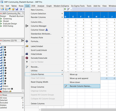 Local( {dt = Data Table( "Plackett-Burman" ), names},