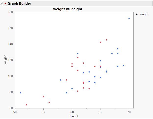 You could assign the desired color as a row state in the data table. Select each group of rows and then select Rows > Color and then the color that you want to use. Another way to use the color row state is to select Rows > Color or Mark by Column. Select the My Color Names column. You will now see the same color scheme that Graph Builder by default. You can change the color theme as a whole or edit the individual colors.