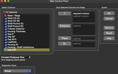 There are different ways to do this depending on which control chart platform you are running: With the Analyze>Quality and Process>Control Chart>Xbar Control Chart, simply change the subgroup size in the Constant Subgroup Size box (default is 5)