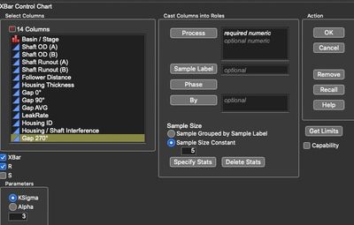 In the Analyze>Quality and Process>Legacy Control Charts>Xbar, there is a similar option Sample Size Constant: