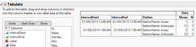 Row Table( Grouping Columns( :IntervalStart, :IntervalEnd, :Station ) )