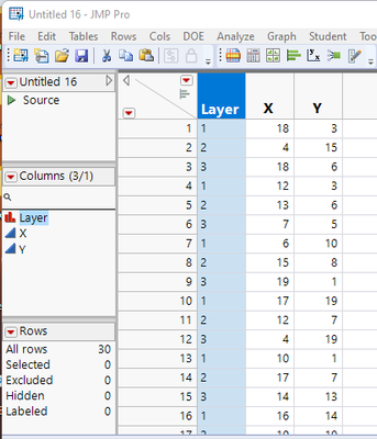 In origin I can use Layers to combine these three sets of data, is there a way to do it in JMP as well?
