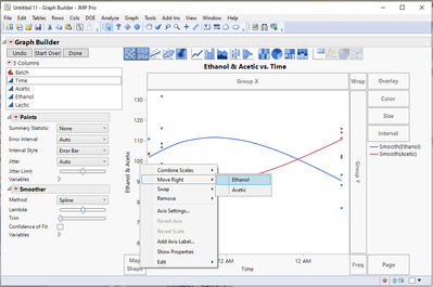 I have 9 parameter and 4 of them have a low values (0 to 40) while the others 5 have values from 21 to 780. I would like to graph all together as seem below, but built a second Y axes for the first 4 parameters.