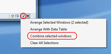 Click the downward pointing triangle next to the check box in any of the windows and selectCombine selected windows.