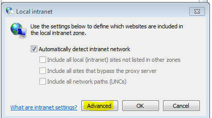 The three check boxes on the sites dialog also make it work, but I think it is better to be a little more specific with the advanced dialog about which servers are OK.