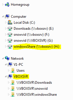 I needed two different names for the same place. VBoxSvr is the name of the server, and H:\ is a drive letter mapping.