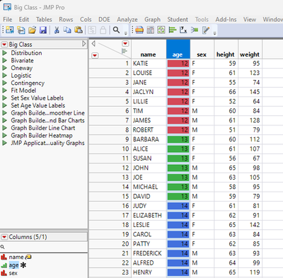 dt:age << color cells( "green", Row() )