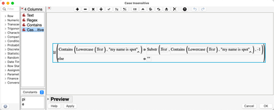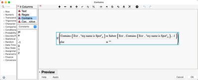 In this case, Contains() and Substr() work really well. If you want a case insensitive comparison you can use Lowercase() to get rid of the casing.