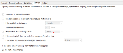 The task scheduler .jmp will still show running unlimited time if I click it to manual run through Task Scheduler.