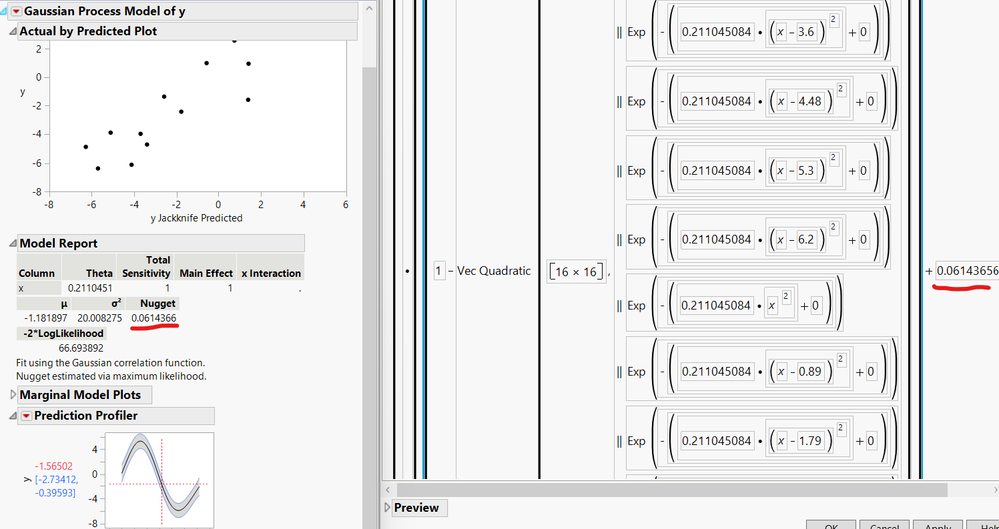 - Add nugget values to the variance formula you saved. The formula is complex, so be careful where you add the nuggets.