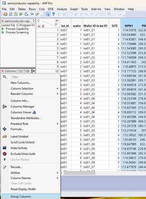 Now return to the original data table. All of the columns with Spec Limits are now selected.