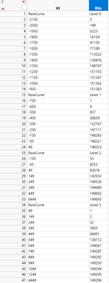 You will need to do a bit of clean up, getting rid of the rows that have Raw Curve and Level as values, and you will need to change the columns from character to numeric.