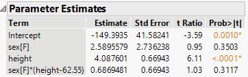 I would suggest taking a worked out dataset with all of the simple slope calculations and run it through JMP to see where the worked out calculations match the JMP output.