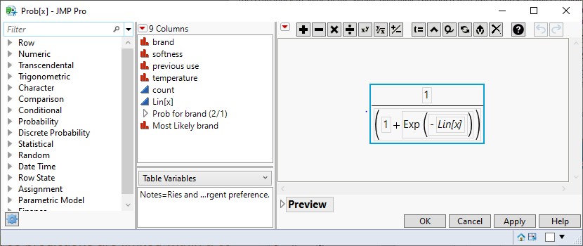 The Lin[x] in this formula would be replace by your prediction formula column.