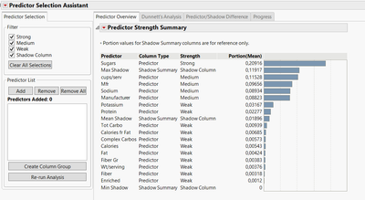 I'm trying to create a predictive regression model to predict the value of a continuous variable. Not that multicollinearity matters all that much to me since I'm purely looking for prediction, but  I have a large number of categorical variables (20+) recorded (along w/ 20+ continuous variables), & I'm looking to do feature selection/variable reduction so as not to over-fit the data, & was wondering if there's a good way to do variable reduction in JMP for categorical variables or find those that might be correlated? I don't have any particular model in mind & will use JMP PRO.