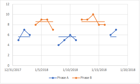 You can also see that the means are shown on the data, with the averages shared across the phase. There is the same mean level for the A phase data and the same for all the B phase data, even though the phases were not totally continuous.