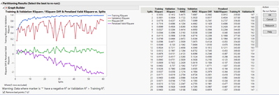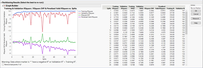 {Set Text( "Training & Validation RSquare / RSquare Diff & Penalized Valid RSquare vs. Splits" )}