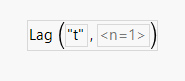 The name of the column is t, and the variable xcols={"t"}. The formula should look like Lag(:t), a reference to the column, not the column name.