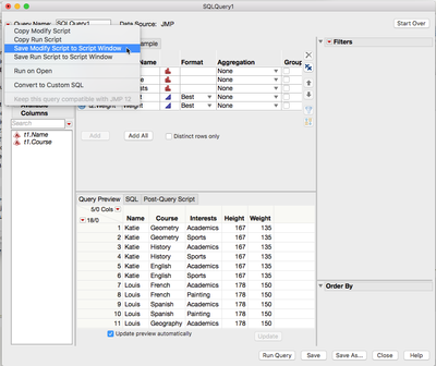 Even though the JMP Query Builder does exactly what I want, I need a way to do it in JSL. Thanks