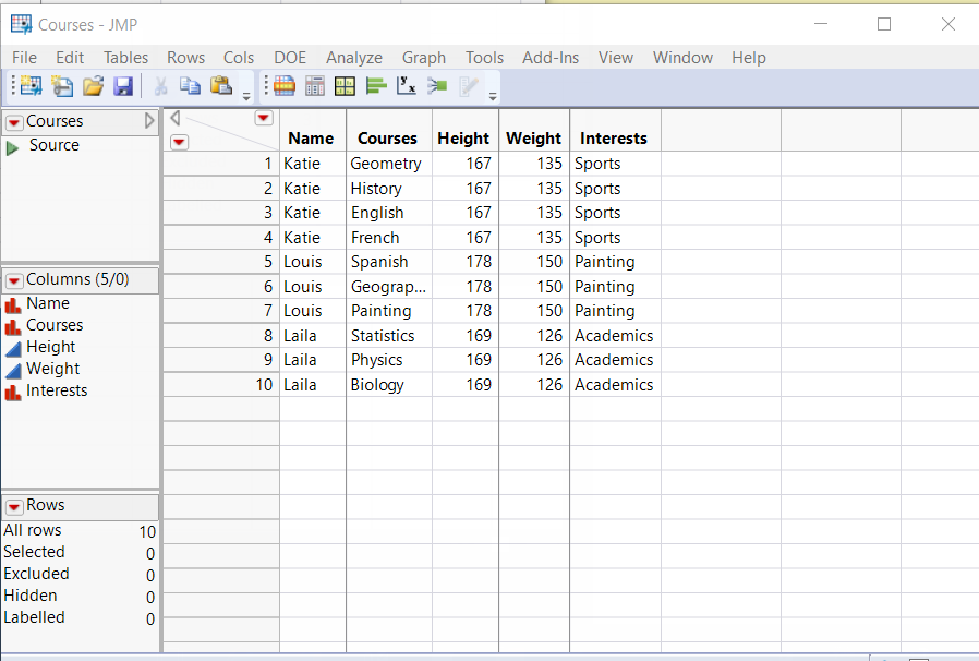 dt1 = Data Table("Courses");