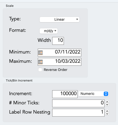 the min and max of the axis can be set here too