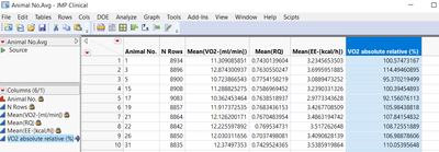 Animal No.Avg << New Column( "VO2 absolute relative (%)",